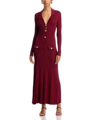 Long Sleeve Rib Maxi Sweater Dress In Burgundy