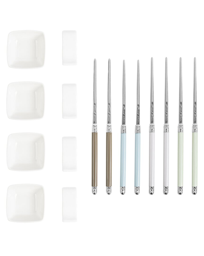 Mother Of Pearl Chopsticks, Ceramic Rests And Sauce Bowls, Set Of 4 Pairs In Gray,blue,green