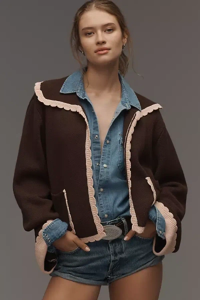 X Anthropologie Scallop-collar Cardigan Sweater In Brown