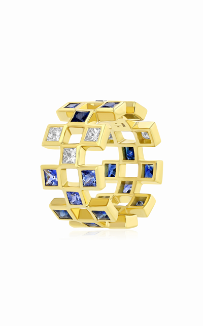 18k Yellow Gold Mirror Ring With Blue Sapphires