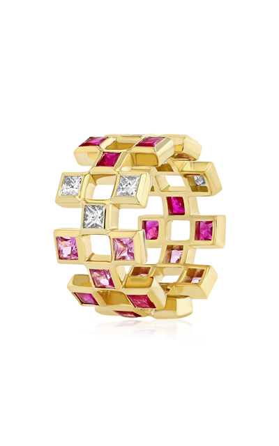 18k Yellow Gold Mirror Ring With Pink Sapphires