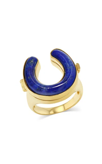 Good Luck 14k Yellow Gold Diamond And Lapis Locket Ring