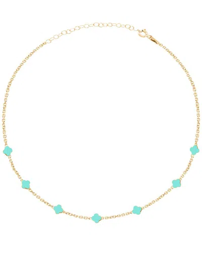 14k Over Silver Cz Mini Clover Necklace In Gold