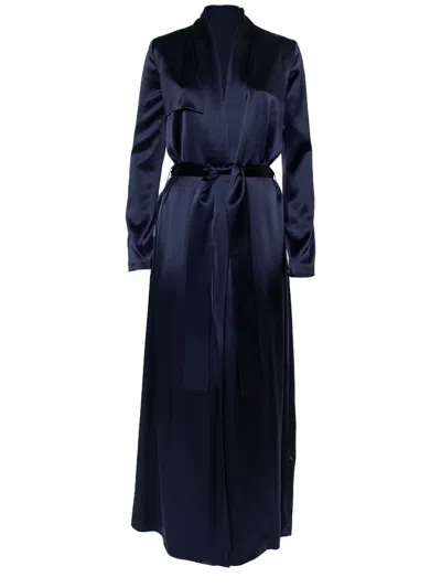 Pre-owned Midnight Blue Satin Belted Trench Coat S In Navy Blue