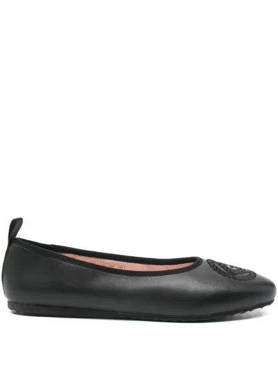 蝴蝶结细节圆头芭蕾平底鞋