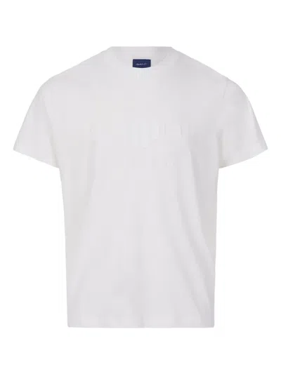 Mens Shield Embroidered-logo Cotton T-shirt In White