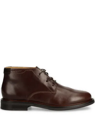 Logo-patch Lace-up Boots In Brown
