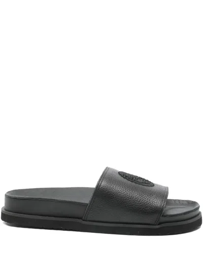 LOGO压纹皮质平底凉鞋