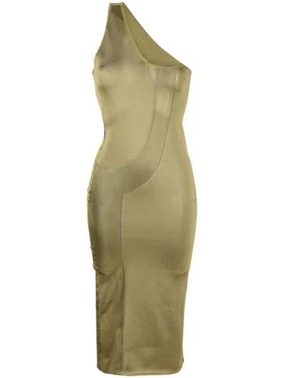 Erla One-shoulder Rib Knit Mini Dress In Green-lt