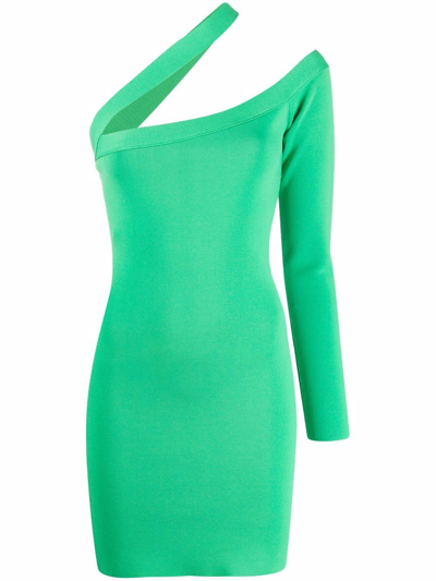 Erla One-shoulder Rib Knit Mini Dress In Green-lt