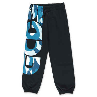 Kids' Gcds Pantaloni Neri In Felpa Di Cotone In Black