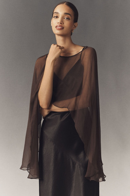 High-low Sheer Cape In Brown