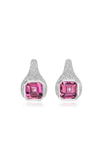 18k White Gold Tourmaline; Diamond Earrings In Metallic