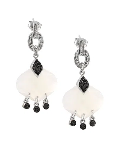 Silver 0.18 Ct. Tw. Diamond & Grey Agate Earrings