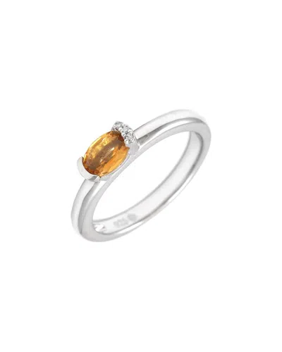 Silver 0.46 Ct. Tw. Diamond & Citrine Ring In Metallic