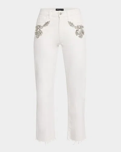 Carolyn Embellished Straight Crop Jeans In Neutral