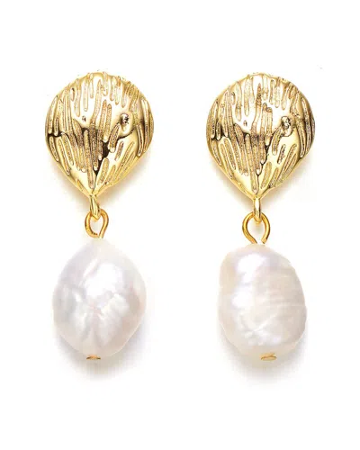 14k Over Silver 7-9.5mm Pearl Earrings No In Gold