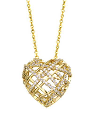 Sterling Silver 14k Gold Plated And Clear Cubic Zirconia Pendant Necklace