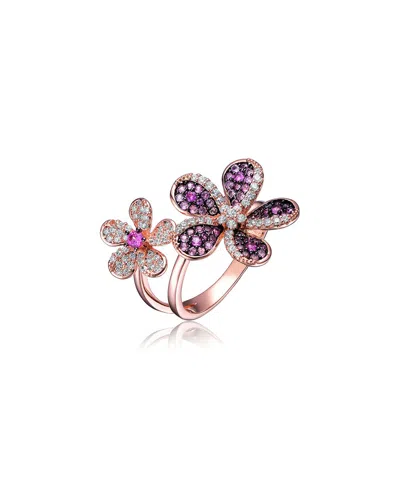 18k Rose Gold Vermeil Cz Floral Ring In Purple
