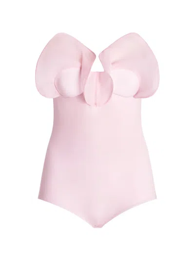 V领褶饰连体紧身衣