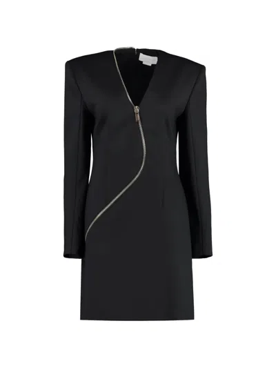 Fitted Silhouette Wool-blend Dress V-neckline In Black