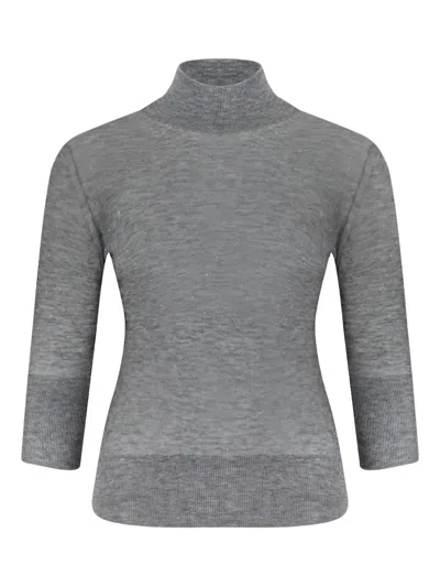 Fitted High Neck Long Sleeve Knit Sweater In Black