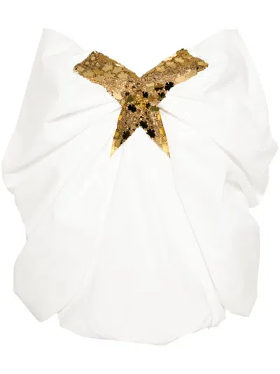 露肩褶饰细节迷你连衣裙