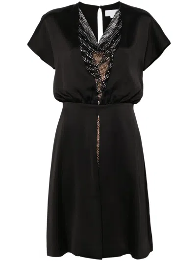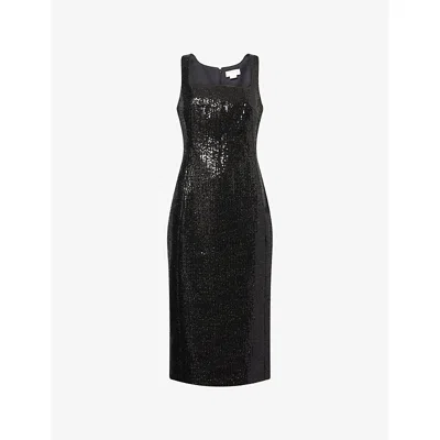 Womens Black Sequin Sleeveless Tweed Mini Dress