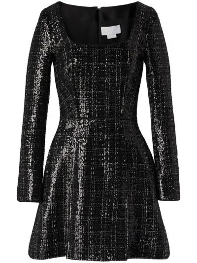 亮片缀饰粗花呢迷你连衣裙