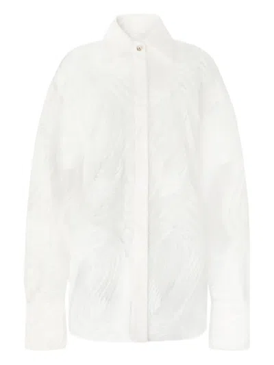 Embroidered Shirt With Slit Sleeves And Rhinestone Buttons In White