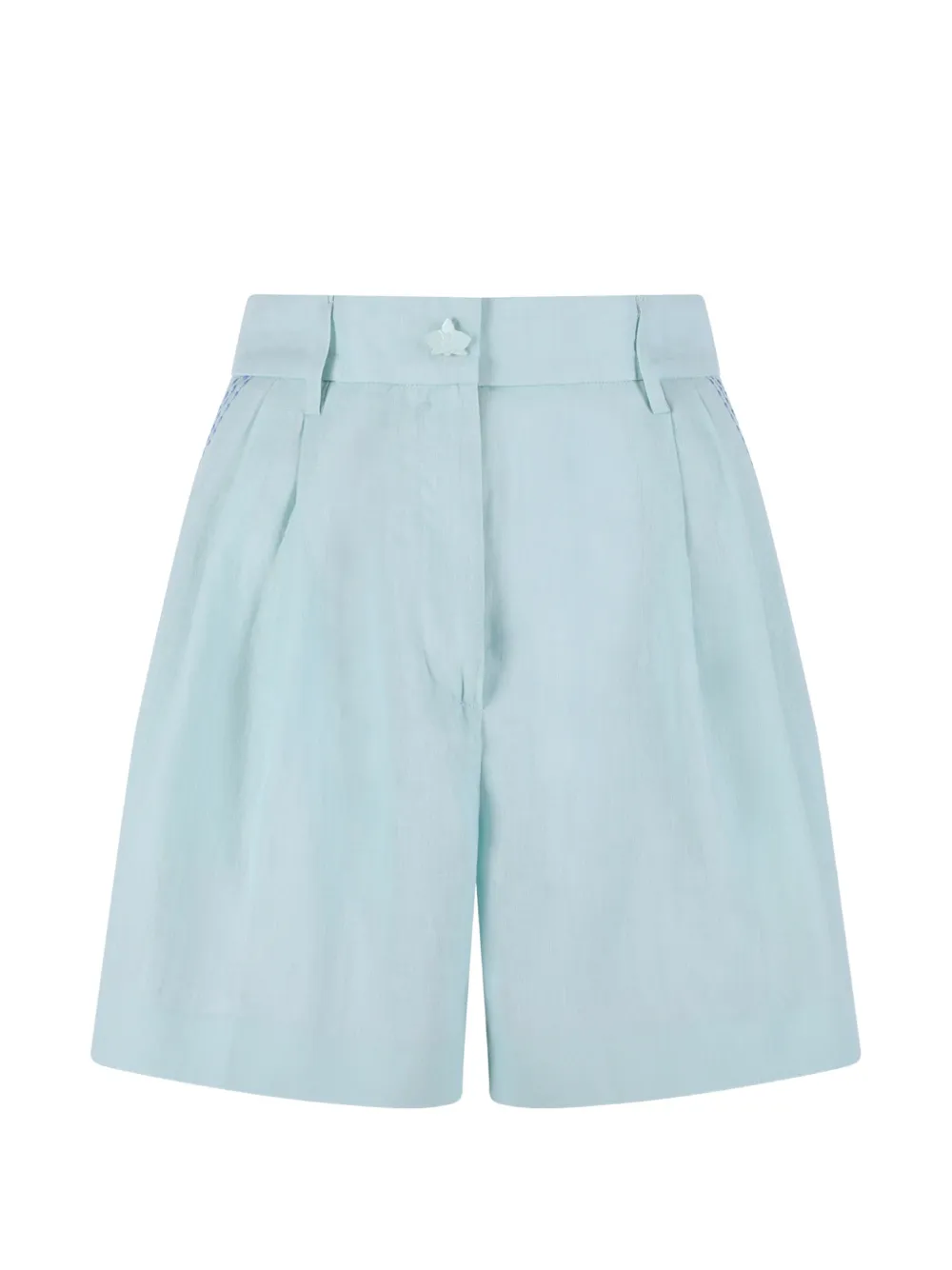 Jacquard Tweed Shorts Pearl Detail Pockets Belt In Blue