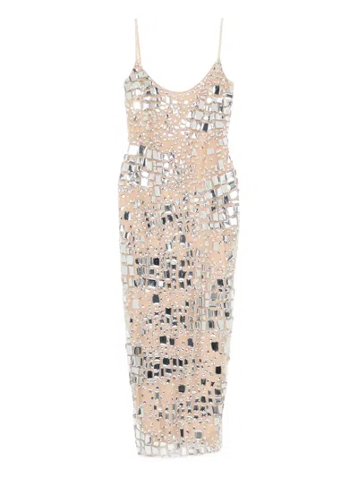 Embellished Midi Dress In Neutral