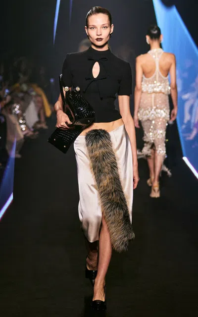Fur-detailed Leather Jacket In Multi