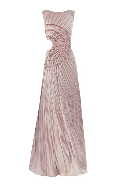 Crescent Cutout Pleated Velvet Maxi Dress In Pink