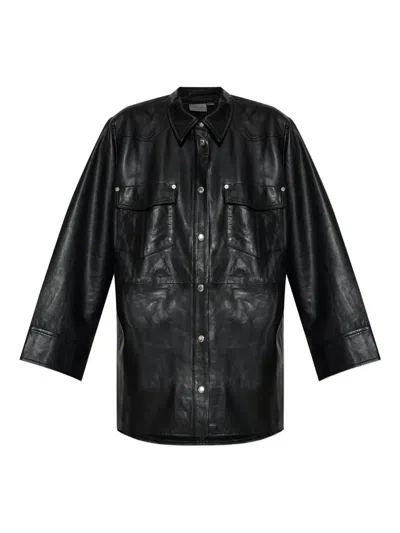 长袖皮质衬衫