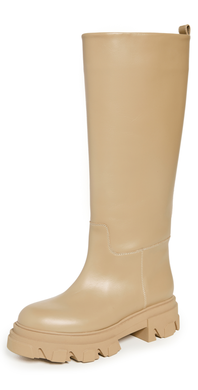 Gia X Pernille Teisbaek Perni 07 Leather Knee-high Boots In Beige