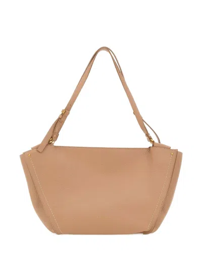 Isa Leather Shoulder Bag With Flap In Caramello-cream