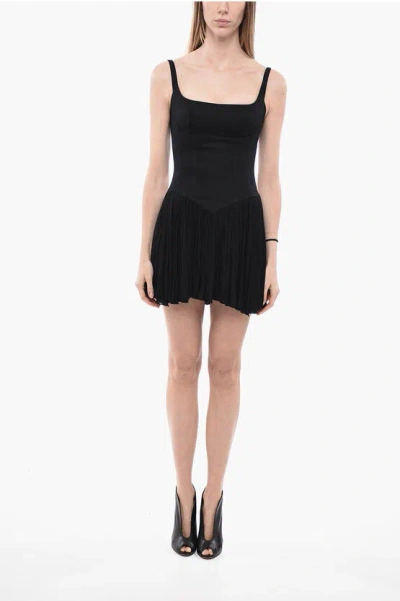 Denim Minidress With Draped Sheer Skirt In Black