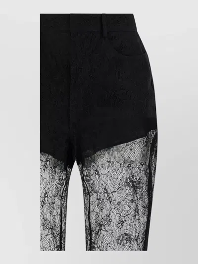 Lace Overlay High Waist Wide Leg Trousers In Neutral