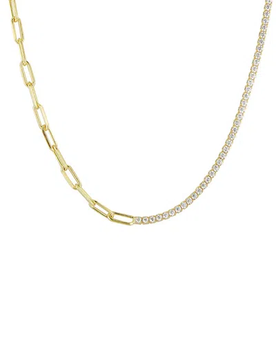 14k Gold Plated Sterling Silver Pave Cz Paperclip Earrings In Yellow Gold