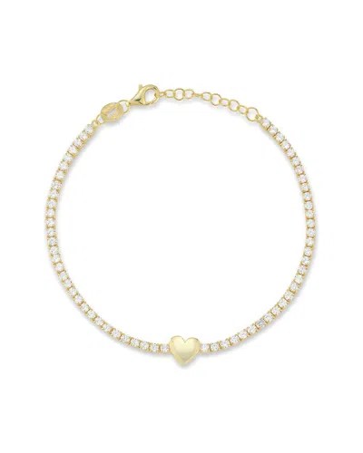 14k Over Silver Diamond Cz Heart Tennis Bracelet