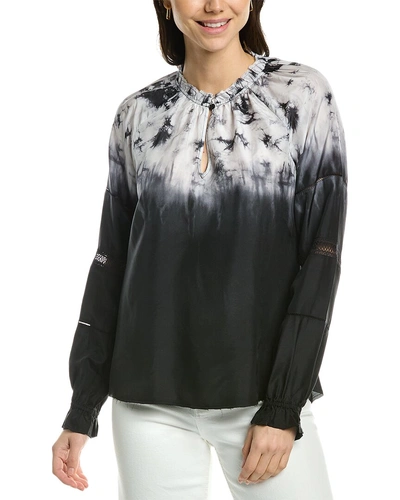 Go> By Gosilk Attention To Detail Silk Peasant Top In Black