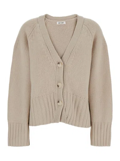 Beige Cardigan With V Neck And Ribbed Trims In Cashmere Woman In Neutral