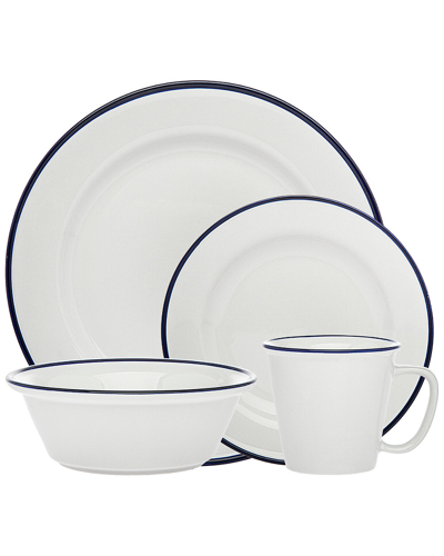 Bistro Blue Band 16 Piece Porcelain Dinnerware Set In White