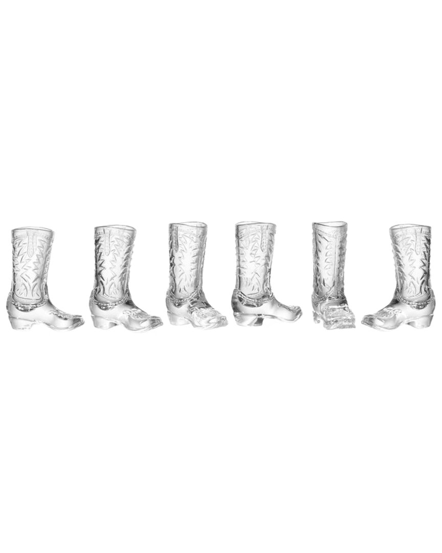 Set Of 6 Whiskey & Rye Cowboy Boot Shot Glasses In Transparent