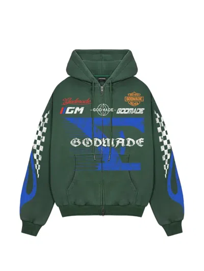 Mens Washed Green 7 Speed Zip Cotton Hoody Xl