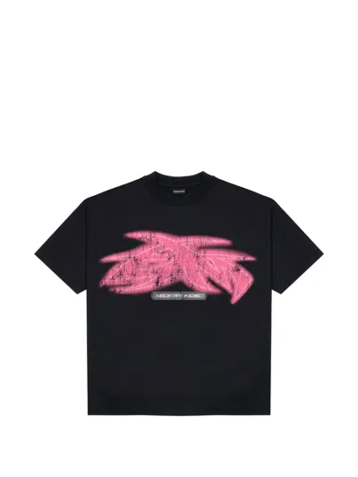 Mens Washed Black Vivid Graphic-print Cotton T-shirt