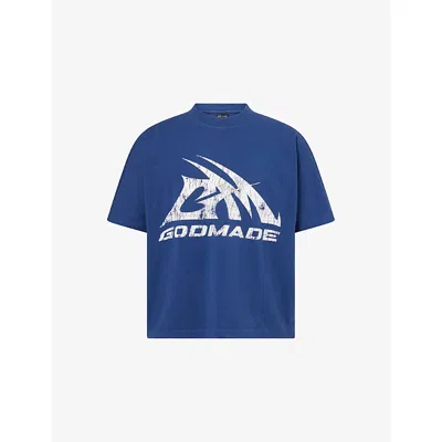 Mens Core Graphic-print Cotton T-shirt Blue Xl