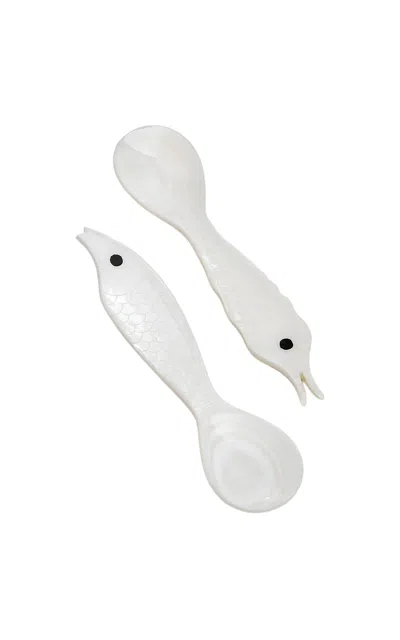 Set-of-two Sea Creatures Mother-of-pearl Spoons In White