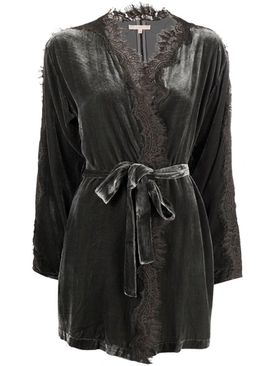 Dark Grey Velvet Lace-trim Long Duster Jacket For Women